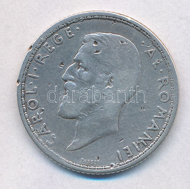 Romania 1910. 1 Leu Ag "Carol I" C:VF,F ding, edge error