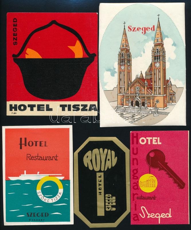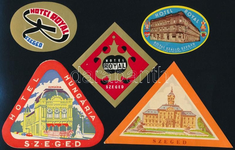 10 db szegedi bőröndcímke (Hotel Hungária, stb.)