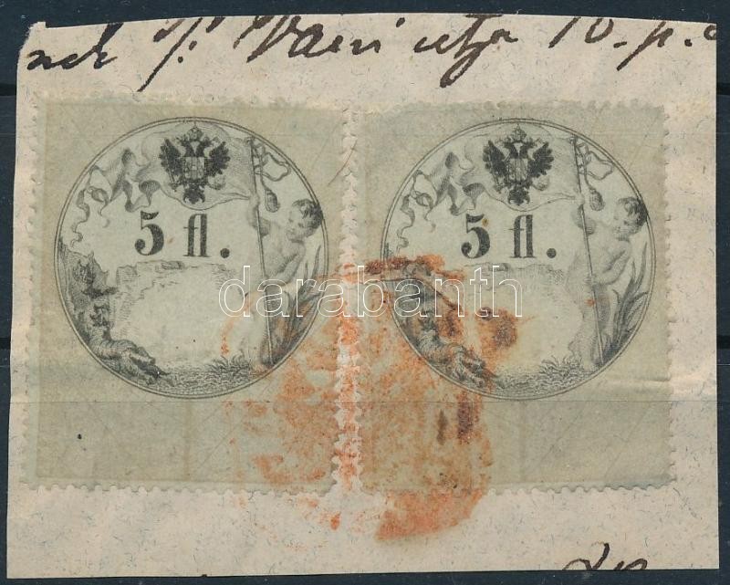 1859/1864 2 x 5 Ft kivágáson, piros bélyegzővel