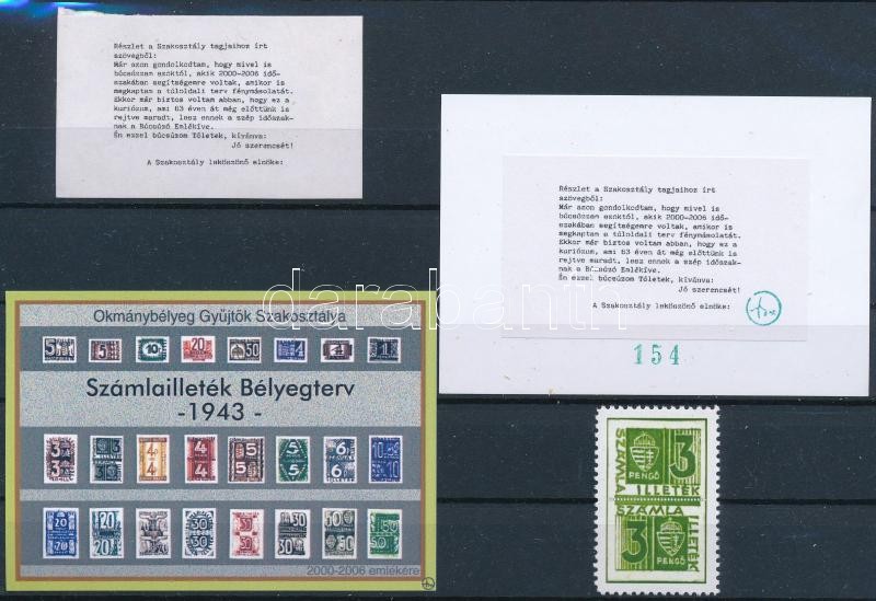 1943 Számlailleték bélyegterv + Búcsú emlékív + levélzáró