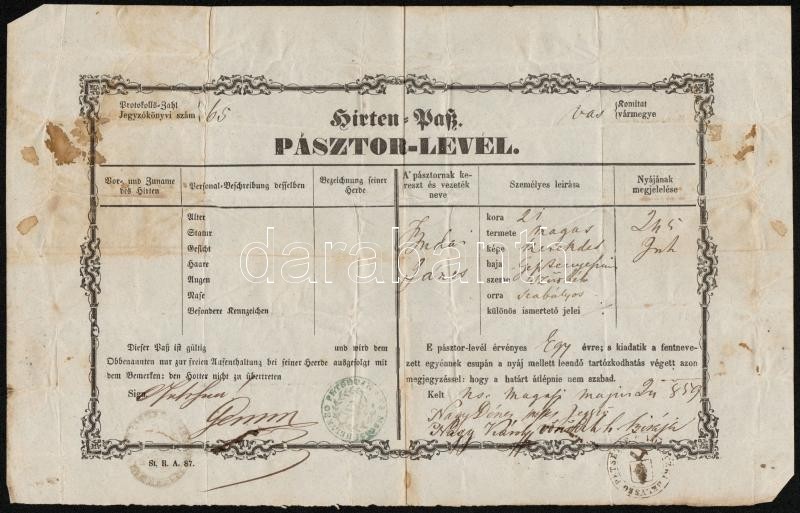 https://www.darabanth.com/en/297-Online-auction/297.0/Other-collectibles/Documents~200019/1859-Pasztorlevel~II1573105