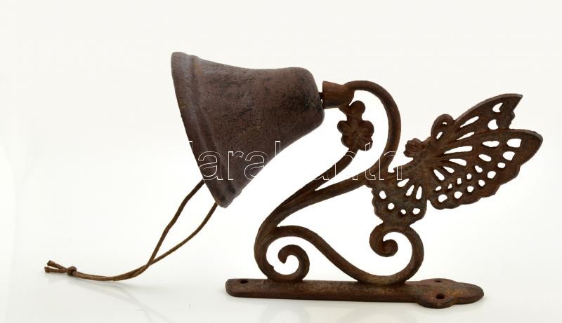 Régi vas kapucsengő, pillangós díszítéssel, m: 20x13 cm.