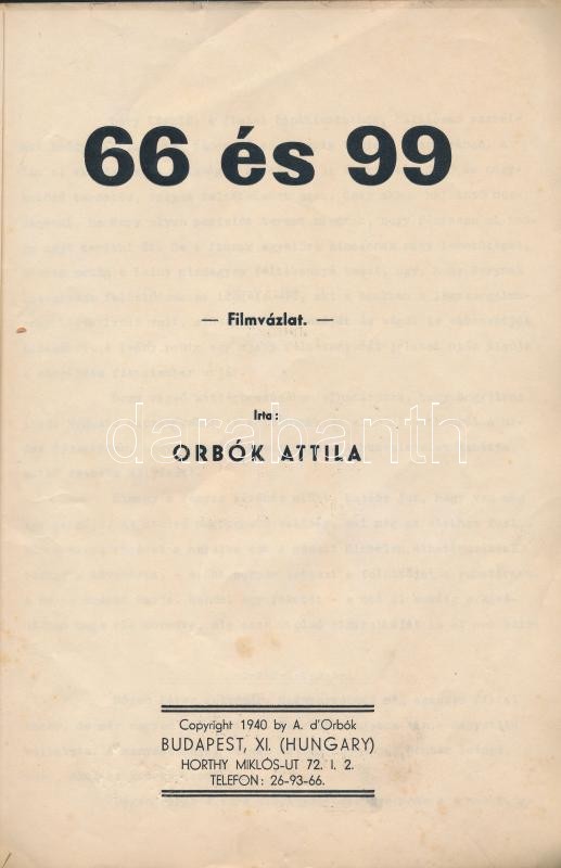 1940 Orbók Attila: 66 és 99 filmvígjáték gépelt forgatókönyve, 11p