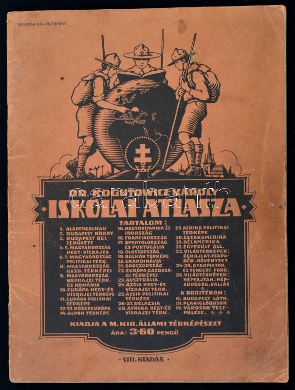 Description: 1931 Dr. Kogutowitz Károly Iskolai atlasza. Bp., M. Kir. Állami Térképészet. VIII. kiadás. Tűzött papírkötés, kis foltokkal, de alapvetően jó állapotban.