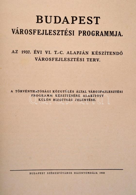 1940 A Törvényhatósági Közgyűlés Külön Bizottságának jelentése, Budapest városfejlesztési programja, leírás + térképek
