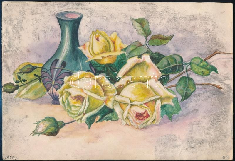 Jelzés nélkül: Rózsás csendélet 1935. Vegyes technika, papír, 20×28 cm