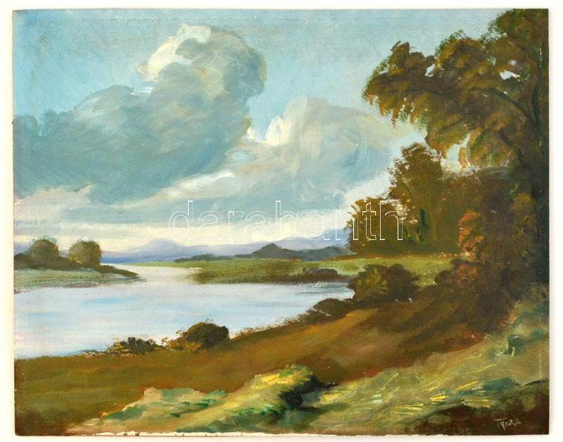 Tyrza jelzéssel: Folyópart. Olaj, farost, 39×50 cm