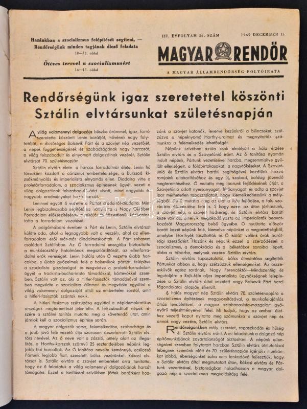 1949 a Magyar Rendőr 3. évf. 24. lapszáma, érdekes aktuális hírekkel