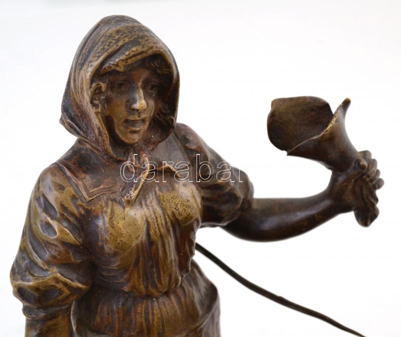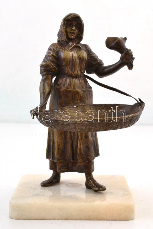 Virágárusleány, bronz alabástrom talapzaton, jelzés nélkül, m: 20 cm.