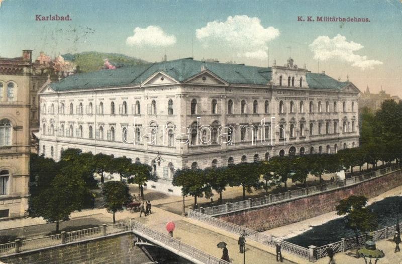 https://www.darabanth.com/en/297-Online-auction/297.0/Postcards/Czech-Republic~23/Karlovy-Vary-Karlsbad-K-K-Militarbadehaus-KuK-military-spa-bridge-Bruck-Sohn-No-1448~II1582220