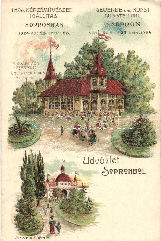 1904 Sopron, Ipar és Képzőművészeti Kiállítás Augusztus 20. - Szeptember 25., Mosonmagyaróvári Sörcsarnok. Geisse H. litho (fl)