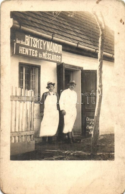 1939 Nagykáta, Bitskey Nándor hentes és mészáros üzlete, photo (fl)