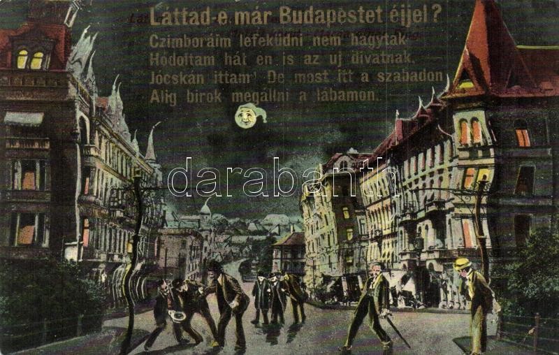 Budapest II. Margit körút, Margit Park kávéház, éjjeli humoros részeges montázslap (EK)