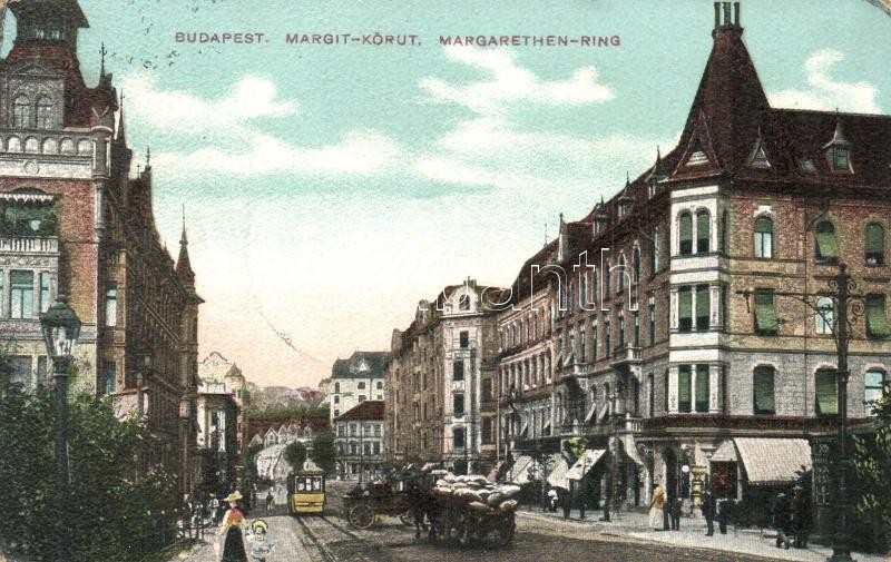 Budapest II. Margit körút, Margit Park kávéház, villamos (EK)