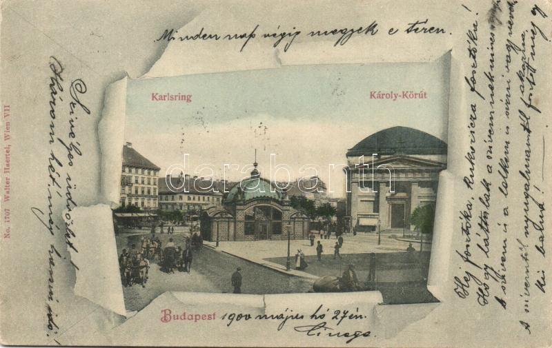 Budapest V. Deák Ferenc tér, Károly körút, Kioszk, Glanzdorf Péter üzlete, Walter Haertel kiadása (EK)