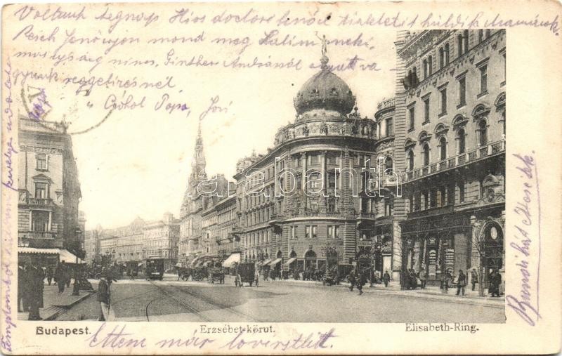 Budapest VIII. Erzsébet körút, villamos, üzletek (EK)