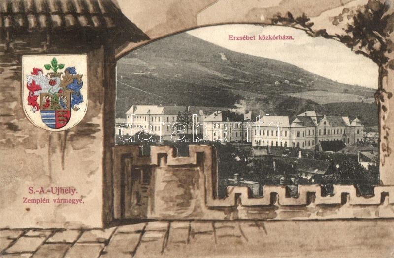 Sátoraljaújhely, Erzsébet közkórház, Weinwurm A. címeres művészlap (Rb...