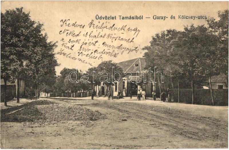 Tamási, Garay és Kölcsey utca, Könyvnyomda. Kiadja Jeruzsálem Ede (EK)