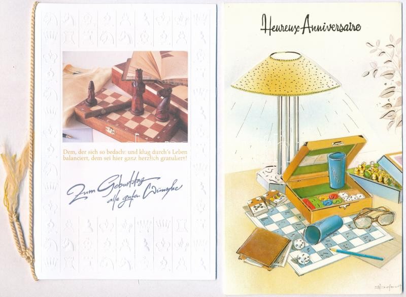 4 db MODERN sakk képeslap, üdvözlőlap / 4 MODERN chess postcards and greeting cards