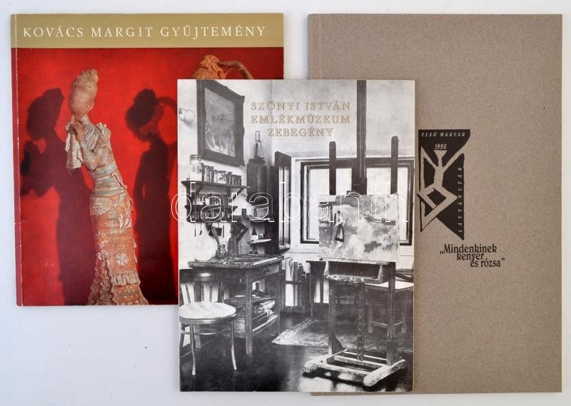 Vegyes kiállítási katalógus tétel, 4 db: Kovács Margit gyűjteménye. Szentendre. Bp., 1978, Pest Megyei Múzeumok Igazgatósága. Harmadik kiadás. Kiadói papírkötés. Szőnyi István emlékmúzeum. Zebegény. Bp., 1975, Pest Megyei Múzeumok igazgatóság. Kiadói papírkötés. "Mindenkinek kenyér és rózsa." Kiállítási katalógus. Tapolca-Diszel, 1990, Első Magyar Látványtár. Kiadói papírkötés. Betlehemi képeskönyv / Bethlehem Picture-Book / Krippenbilderbuch. Bp., 2002, A Magyar Kézművességért Alapítvány. Kartonált papírkötés.