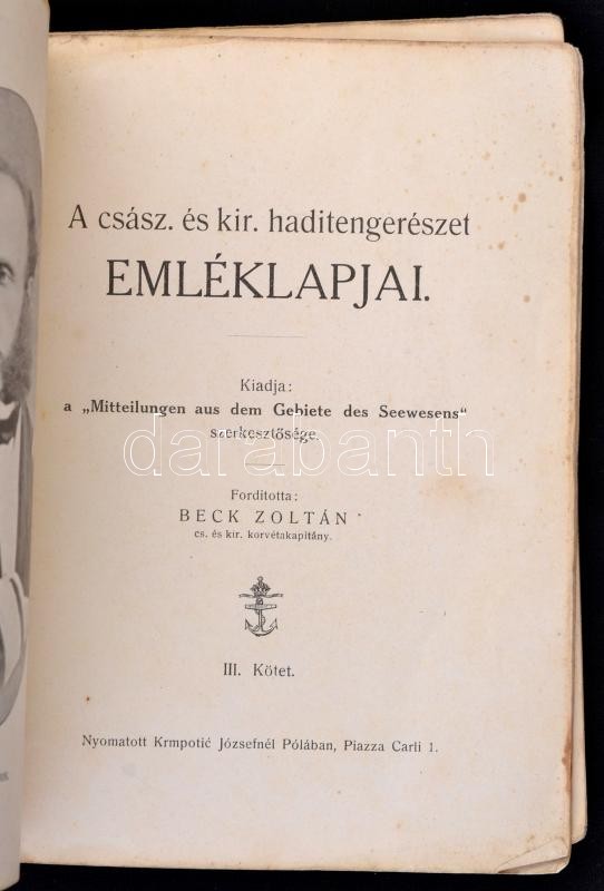 A csász. és kir. haditengerészet emléklapjai III. kötet. Kiadja a "Mit... https://www.darabanth.com/en/298-Online-auction/298.0/Books/Books-Military~400005/A-csasz-es-kir-haditengereszet-emleklapjai-III-kotet-Kiadja-a-Mitteilungen-aus-dem-Gebiete~II1593925