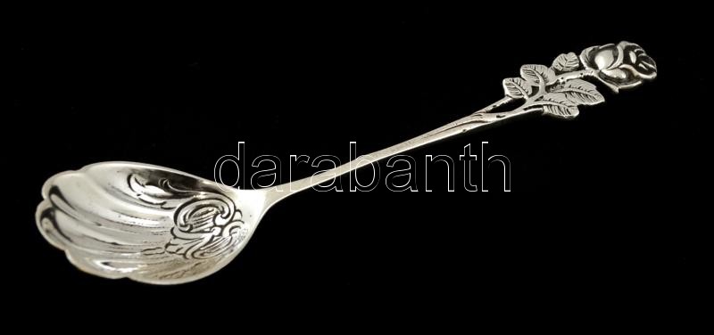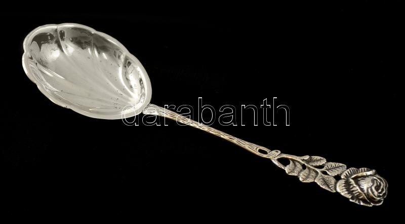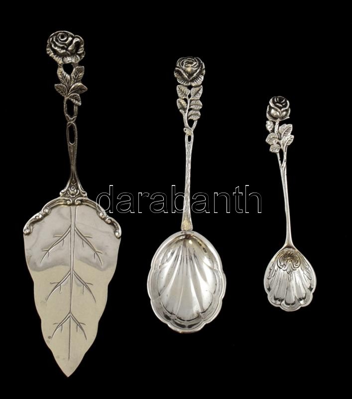 Ezüst(Ag) 3 db rózsás kanál és tortalapát, jelzett, h: 11, 14,5 és 19 ...