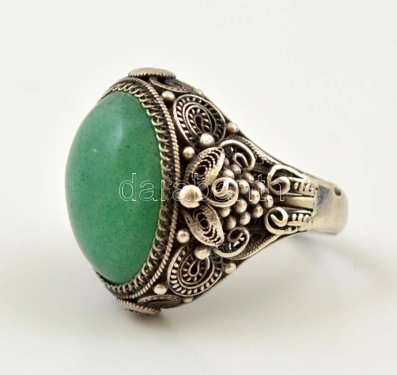 Ezüst(Ag) gyűrű aventurinnal díszítve, állítható, jelzett, kis deformációval, bruttó: 9,6 g