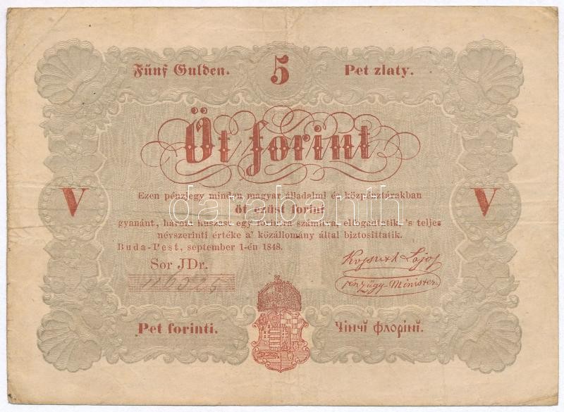 https://www.darabanth.com/en/298-Online-auction/298.0/Numismatics/Hungarian-Banknotes~300006/1848-5Ft-Kossuth-banko-vorosesbarna-nyomat-TIII-III---Adamo-G109~II1596096