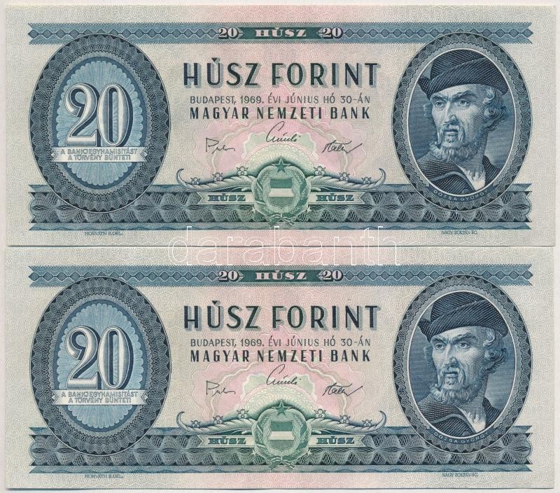 1969. 20Ft (2x) sorszámkövetők "C893 014070 - C893 014071" T:III szép,...
