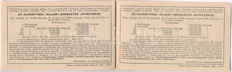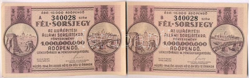 1946. "Fél-sorsjegy az Újjáépítési Állami Sorsjátékra" fél sorsjegy 10.000AP értékben, "A" és "B" sorsjegy ívben T:I-,II