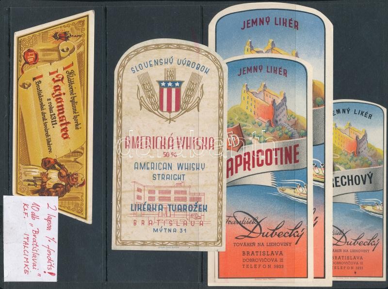 10 db régi italcímke Pozsonyban gyártva / Pressburg beverage labels
