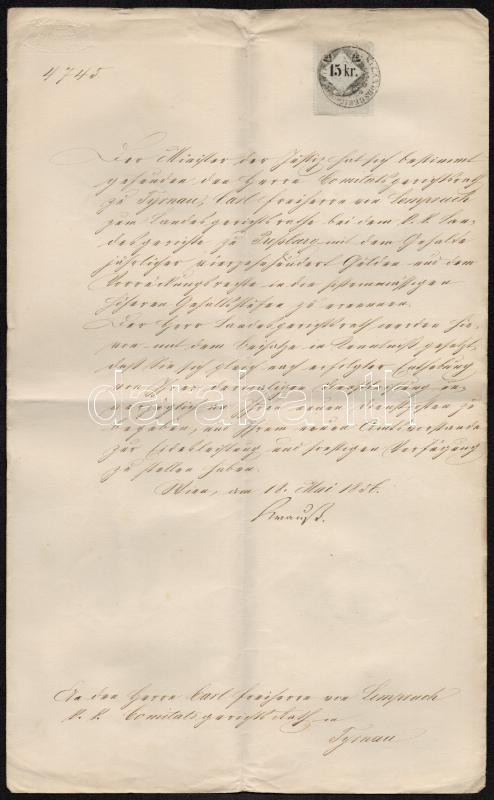 1856 Hivatalos levél az osztrák igazságügyminiszter saját kezű aláírás...