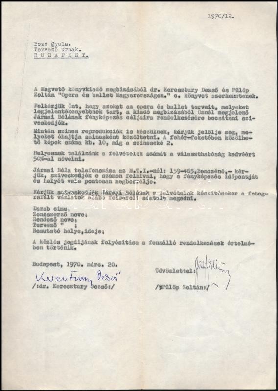 1970 Keresztury Dezső (1904-1996) író, költő sajátkezű aláírása Bozó G...