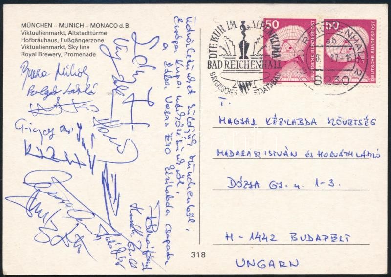 1970 a Rába Vasas ETO kézilabda csapat tagjainak aláírásai Münchenből küldött levelezőlapon