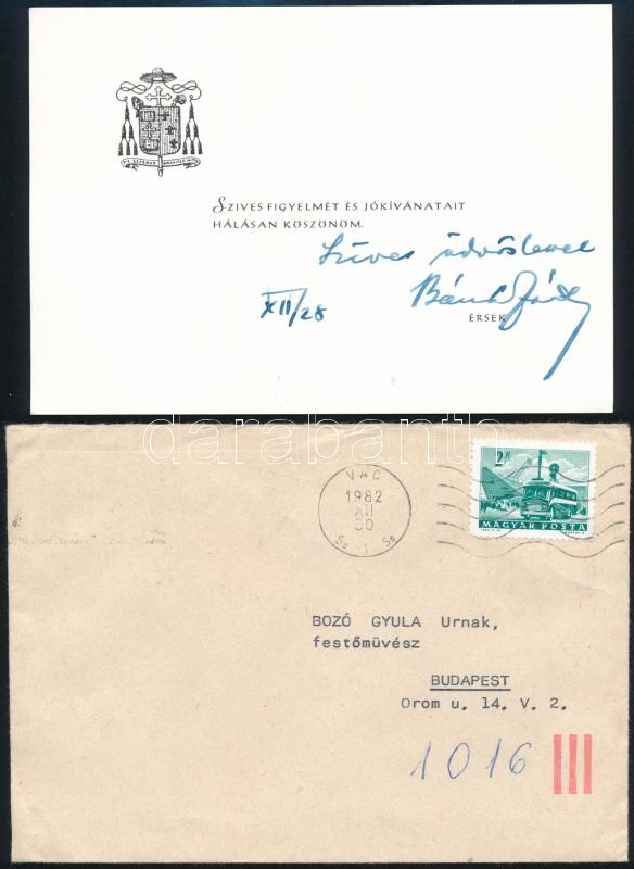 1982 Bánk József (1911-2002) váci érsek-püspök aláírása Bozó Gyula (19... https://www.darabanth.com/en/298-Online-auction/298.0/Other-collectibles/Autographs~100018/1982-Bank-Jozsef-1911-2002-vaci-ersek-puspok-alairasa-Bozo-Gyula-1913-2004-grafikus-ip~II1593772