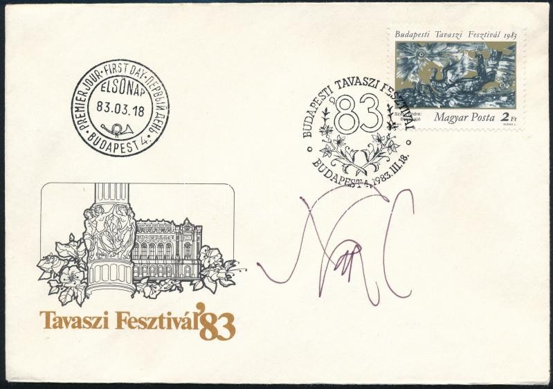 1983 Tavaszi Fesztivál FDC Szász Endre grafikus, a bélyeg tervezőjének aláírásával