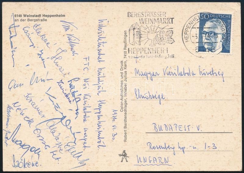 1984? az FTC női kézilabda csapat tagjainak aláírásai Heppenheimből küldött levelezőlapon