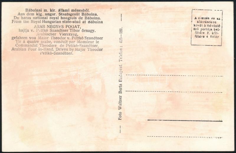 Pettkó Szandtner Tibor fogathajtó aláírása őt magát ábrázoló fotólapon