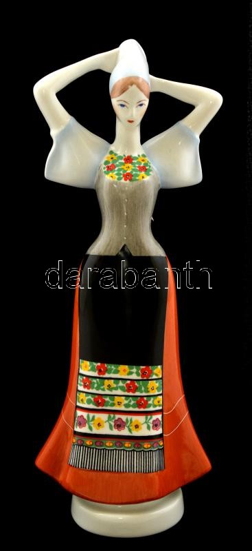 Aquincumi népviseletes lány, kézzel festett, jelzett, hibátlan, m:24 cm