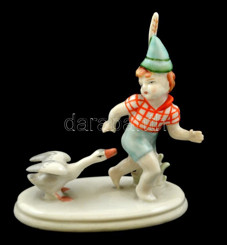 Metzler & Ortloff kisfiú a libával, kézzel festett, jelzett, hibátlan, m:10 cm