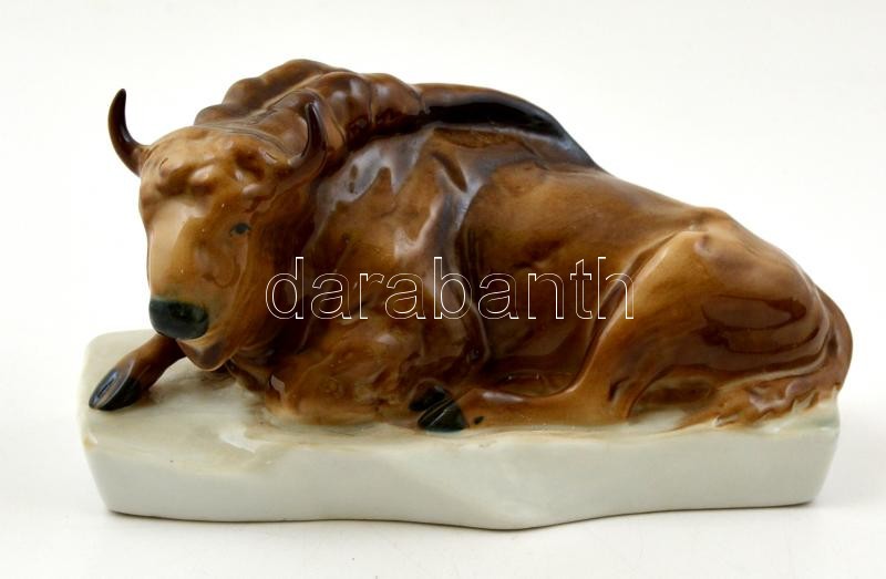 Zsolnay fekvő bölény, kézzel festett, jelzett, hibátlan, h: 20,5 cm, m...