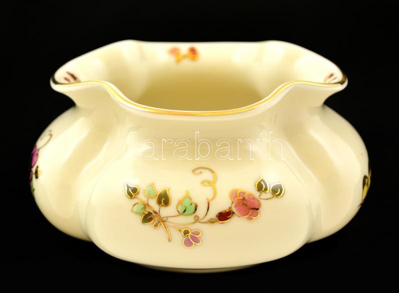 Zsolnay pillangó mintás kis kaspó, kézzel festett, jelzett, hibátlan, d:12,5 cm, m:6,5 cm