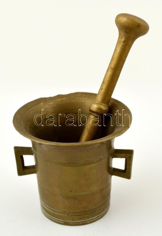 Sérült réz mozsáe törővel, m:11cm, m:22 cm (törő)
