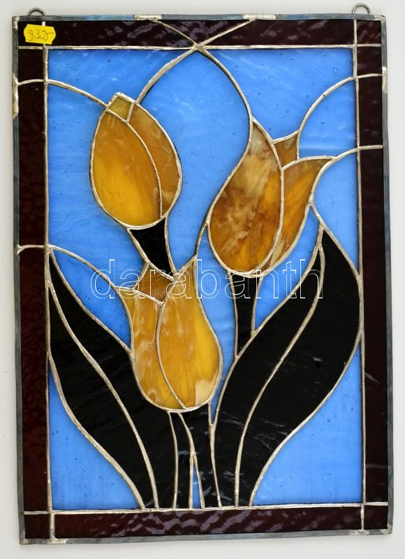 Tulipánok. Festett ólomüveg, jelzés nélkül, 35,5x25,5 cm