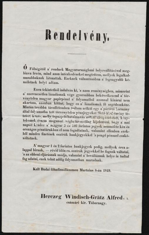 https://www.darabanth.com/en/298-Online-auction/298.0/Other-collectibles/Historical-documents-manuscripts~100017/1849-Windis-Gratz-tabornok-hirdetmenye-Rendelveny-a-papiralapu-Kossuth-bankok-ervenytele~II1597333