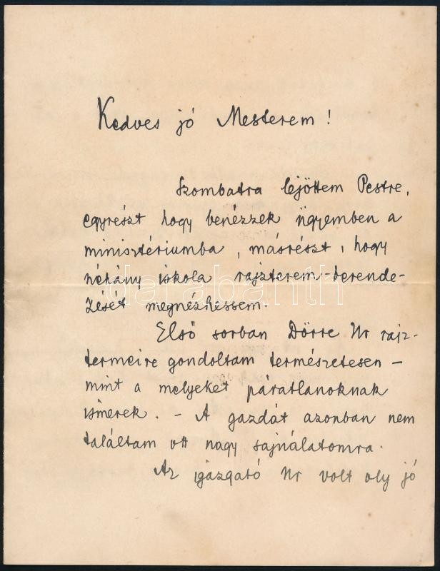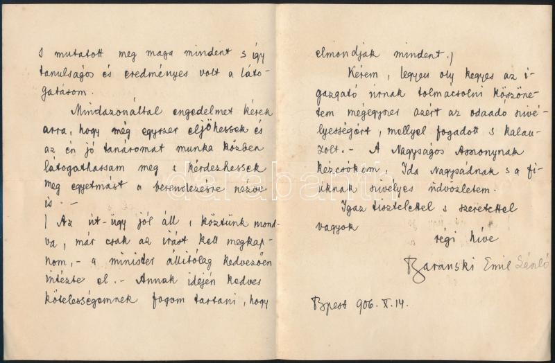 1906 Baranski Emil László (1877-1941) festőművész, grafikus saját kézzel írt levele, Dörre Tivadar (1858-1932) festőművésznek címezve