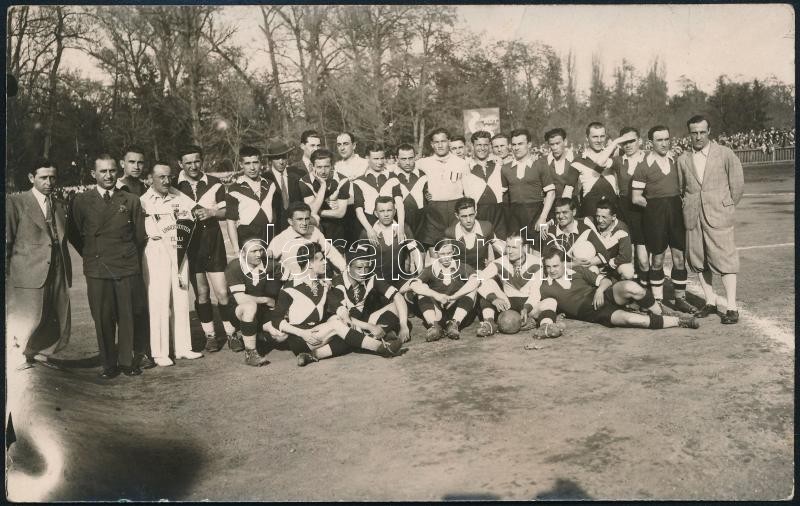 1932 A Beszkárt és az Universitatea csapatai, fotó, hátulján feliratozva, 9×14 cm