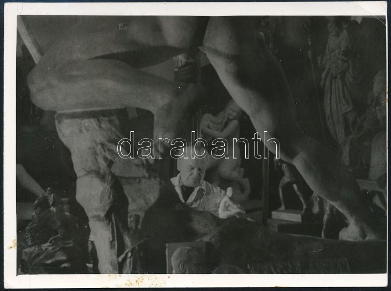 1958 Kisfaludi Strobl Zsigmond (1884-1975) kétszeres Kossuth-díjas, magyar szobrászművész, jelzés nélküli Markovics Ferenc fotó, 9x12cm