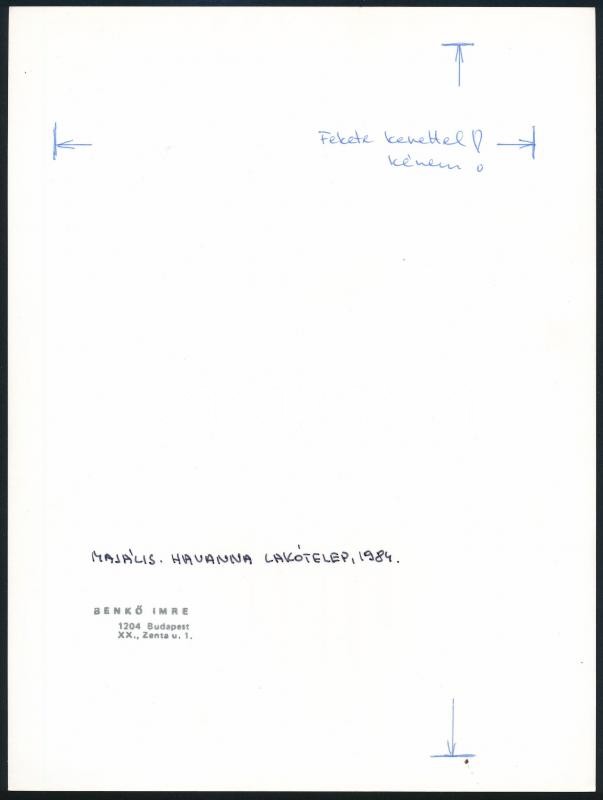 Benkő Imre (1943- ): Majális, Havanna lakótelep 1984, fotó, hátulján f...
