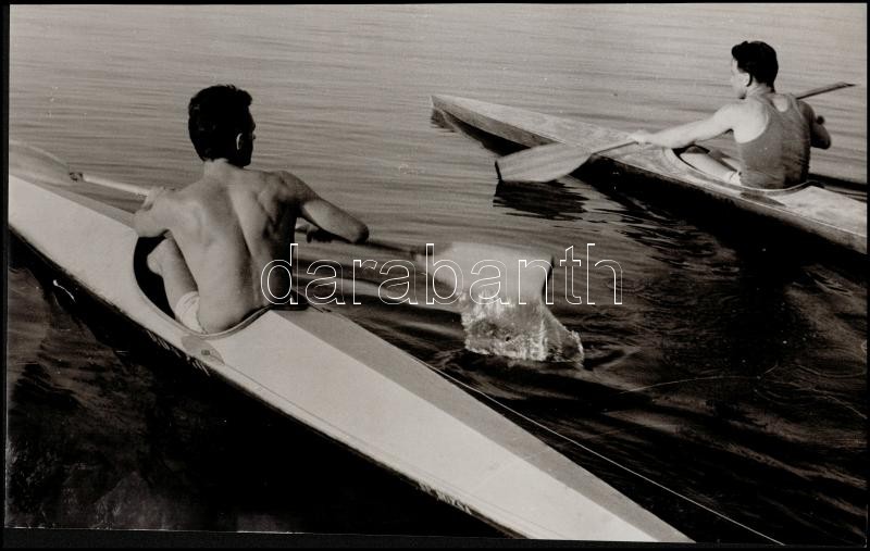 Evezősök, 4 db vintage fotóművészeti alkotás, 40x30 cm és 18x38 cm köz...